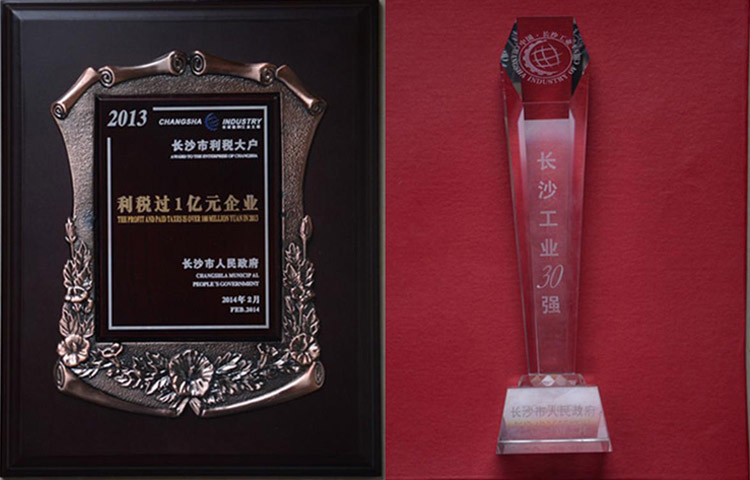 公司榮獲2013年度“長(zhǎng)沙工業(yè)三十強(qiáng)”、“利稅過(guò)億元企業(yè)”等榮譽(yù)