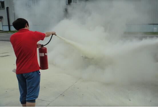 培訓(xùn)最后全體人員從模擬火災(zāi)現(xiàn)場進(jìn)行逃生疏散演練,以及進(jìn)行滅火器滅火、使用消防水管的演練。