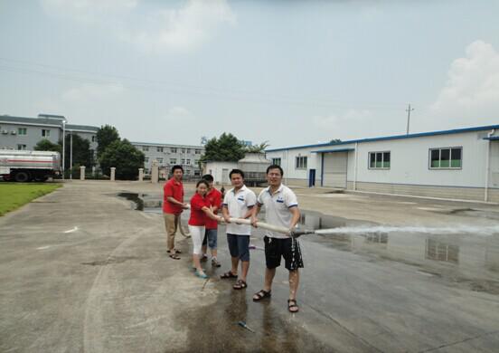 湖南爾康湘藥制藥員工在進(jìn)行消防水管的演練