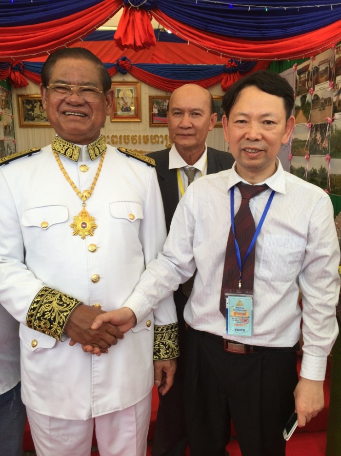 柬埔寨國王諾羅頓·西哈莫尼與柬埔寨爾康參展人員合影