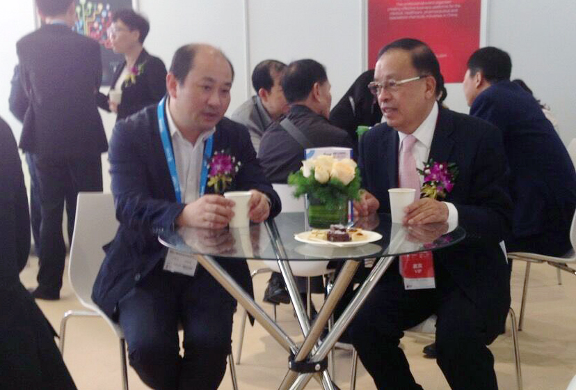 公司總經(jīng)理劉愛軍與中國化學制藥工業(yè)協(xié)會執(zhí)行會長潘廣成(右一)親切交談