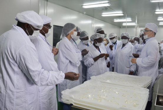 培訓班學員參觀了爾康制藥的總部辦公大樓以及部分生產(chǎn)車間,在技術(shù)人員的指導下,學習了爾康制藥的相關(guān)生產(chǎn)檢驗設(shè)備的操作流程,詳細詢問和了解公司很多產(chǎn)品,特別是淀粉膠囊的相關(guān)知識。肯尼亞學員看到制作淀粉膠囊的木薯圖片后,興奮地說到:“我們肯尼亞也有這種木薯,肯尼亞物產(chǎn)豐富,氣候適宜,國家渴望發(fā)展,希望爾康制藥以后也到我們國家去投資生產(chǎn)。”