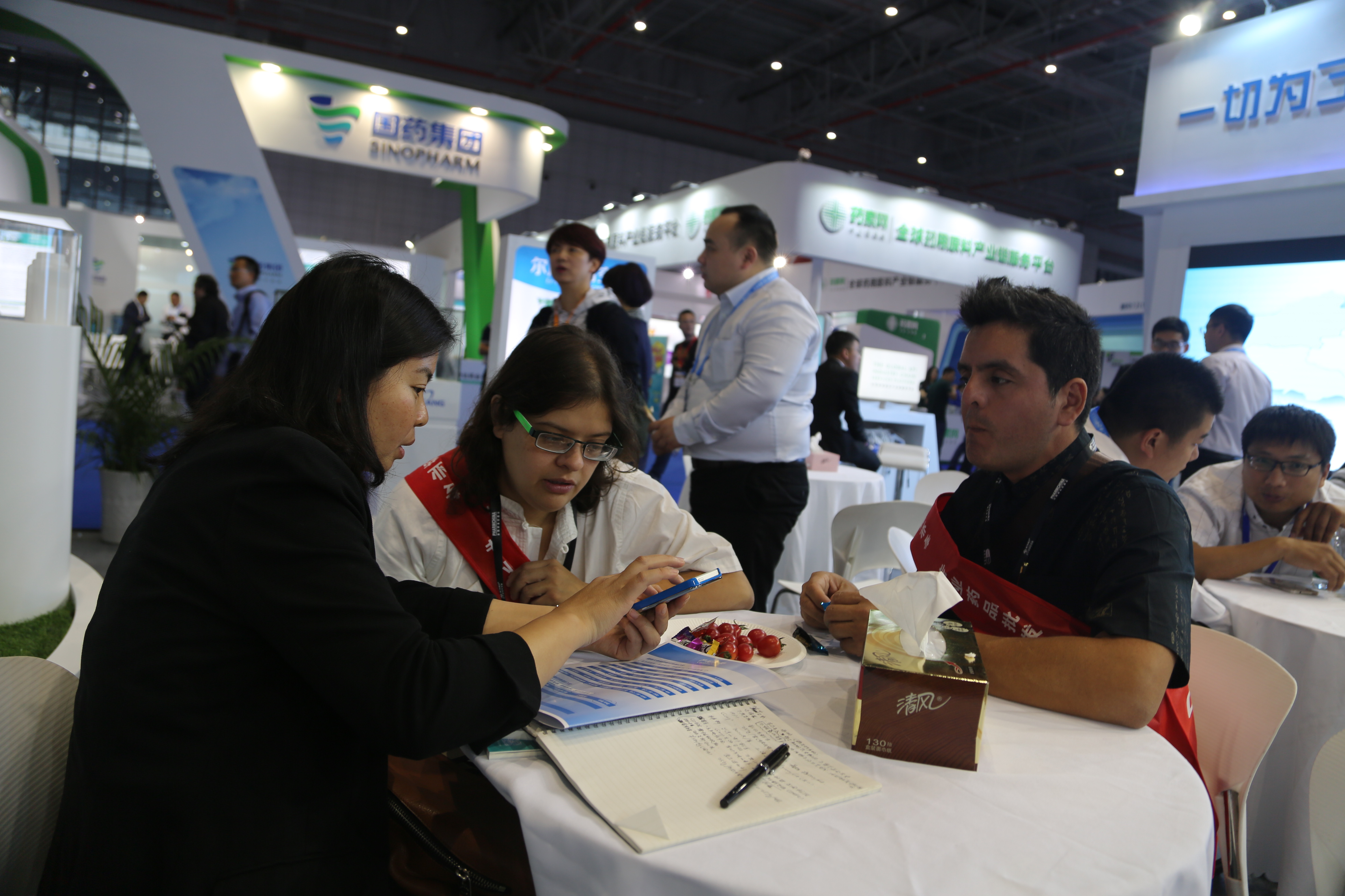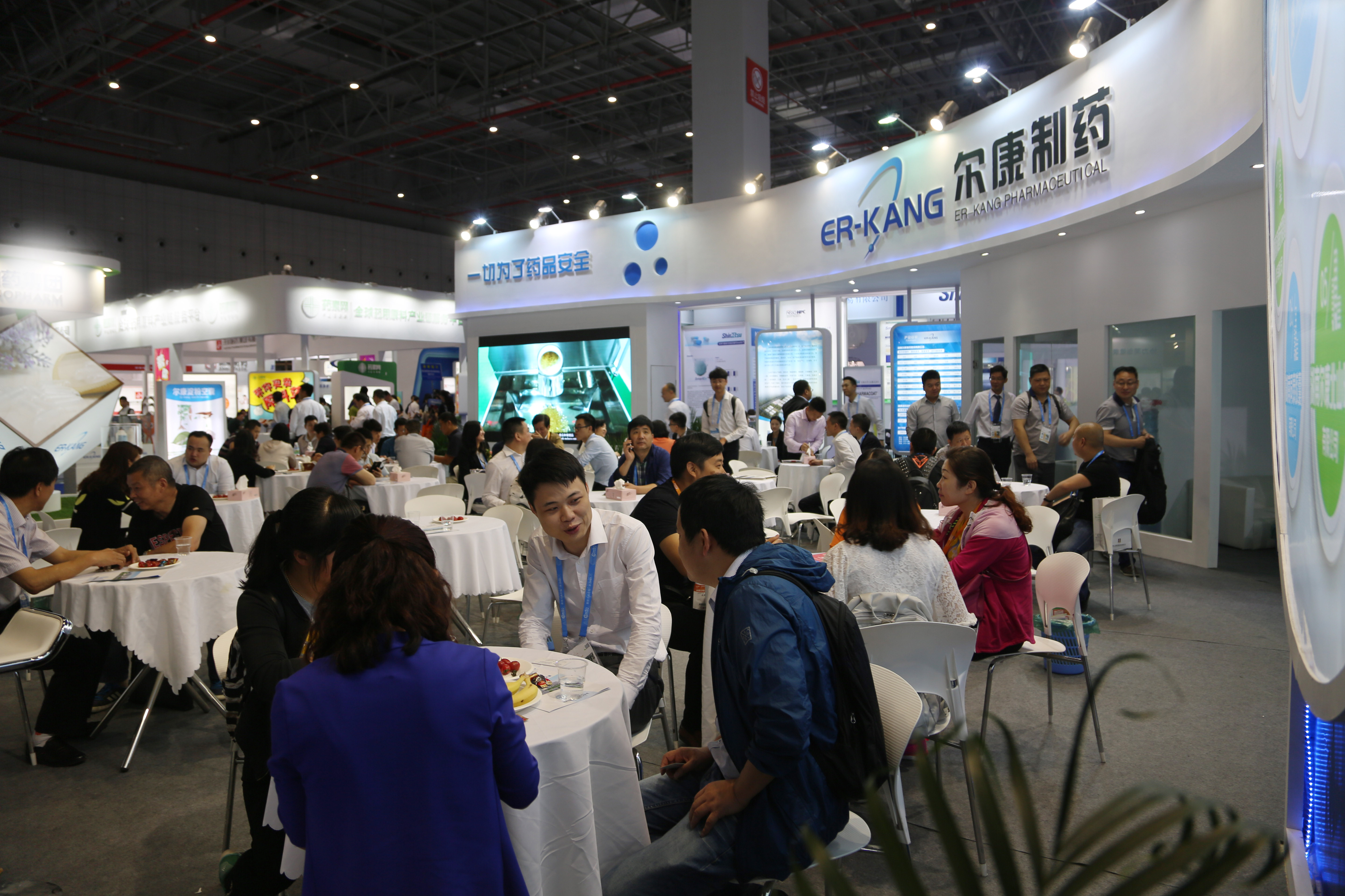 一進(jìn)入上海國(guó)家會(huì)展中心大門,爾康制藥藍(lán)白簡(jiǎn)約風(fēng)格的展廳就映入眼簾,百余平方米的展廳內(nèi)整齊擺放著近三十套桌椅,展臺(tái)上井然有序的陳列著參展產(chǎn)品,四十余名工作人員精神煥發(fā),用心接待每一位客戶,努力讓每一位客戶滿意。