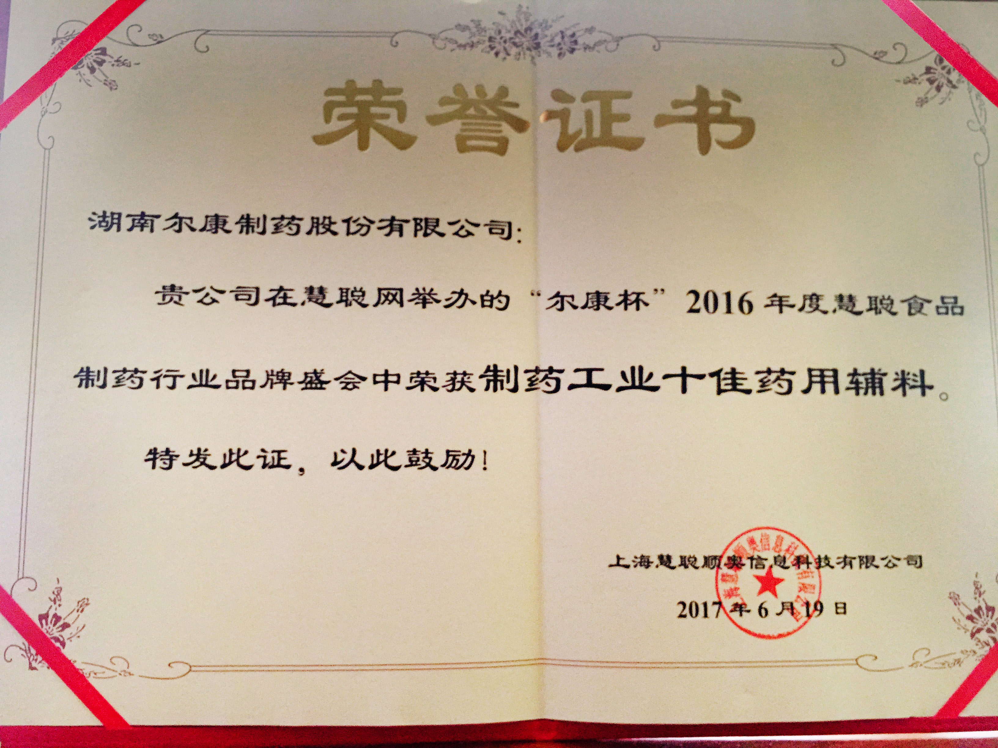 6月19日—20日,2016年度慧聰網(wǎng)食品制藥行業(yè)品牌盛會(huì)在上海召開,爾康制藥位列“制藥工業(yè)十佳藥用輔料品牌”獎(jiǎng)項(xiàng)第一名,公司董事、副總經(jīng)理王向峰代表公司接受獎(jiǎng)項(xiàng)并向大會(huì)致辭。