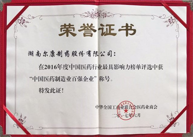 爾康制藥榮獲2016年度中國醫(yī)藥工業(yè)百強(qiáng)和成長(zhǎng)50強(qiáng)兩大榮譽(yù)