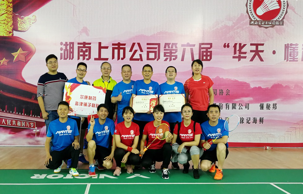10月19日-20日,湖南上市公司第六屆“華天-懂秘邦”杯羽毛球團(tuán)體賽在省人民體育場(chǎng)隆重舉行,來(lái)自全省各地40余家上市企業(yè)參加比賽。爾康制藥和鹽津鋪?zhàn)?6名運(yùn)動(dòng)員組成聯(lián)隊(duì)參與了本次羽毛球盛會(huì)。