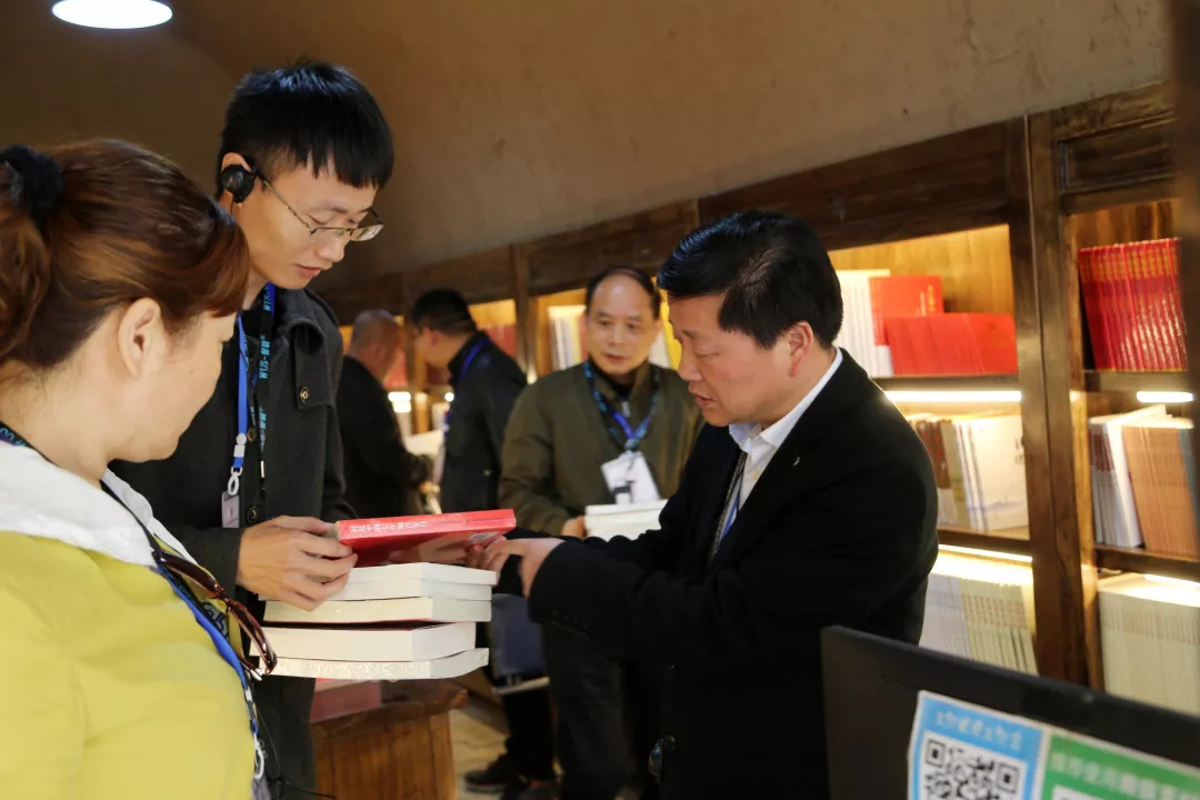 集團董事長帥放文(右一)和黨總支書記楊杰(右二)探討加強企業(yè)黨建