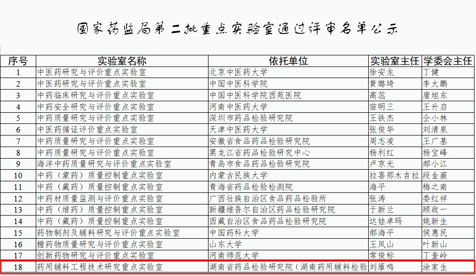 1月22日,國家藥品監(jiān)督管理局發(fā)布了《關(guān)于對第二批重點(diǎn)實(shí)驗室名單進(jìn)行公示的通知》,藥用輔料工程技術(shù)研究重點(diǎn)實(shí)驗室通過評審。