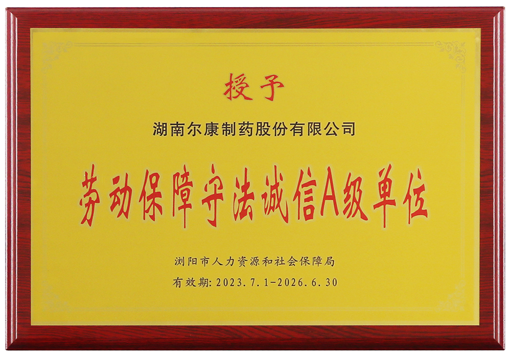 為督促用人單位遵守勞動保障法律法規(guī),履行守法誠信義務(wù)、提高守法誠信意識,近日,瀏陽市人力資源和社會保障局經(jīng)初步評價(jià)、實(shí)地檢查、綜合認(rèn)定等程序,公布了2022年度用人單位勞動保障守法誠信等級評價(jià)結(jié)果,爾康制藥榮獲“勞動保障守法誠信A級單位”,A等級單位將優(yōu)先享受推優(yōu)推先及相關(guān)政策。