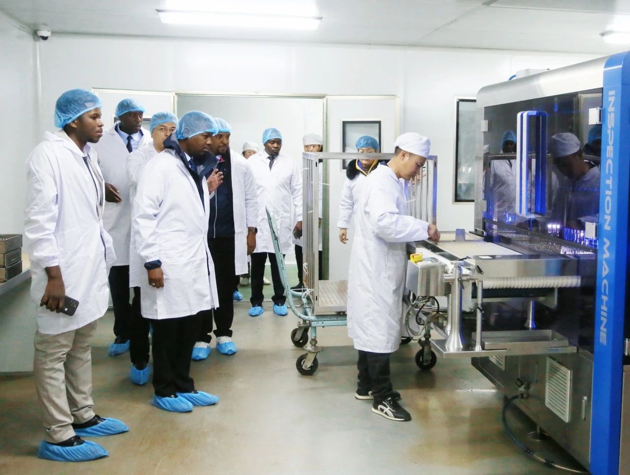 在爾康制藥董事長(zhǎng)帥放文的陪同下,坦桑尼亞官員一行參觀了公司的成品藥制劑車間。現(xiàn)代化生產(chǎn)設(shè)備和自動(dòng)化生產(chǎn)流程給他們留下了深刻印象,他們對(duì)爾康制藥在藥品生產(chǎn)、質(zhì)量控制以及包裝流程等方面的嚴(yán)格標(biāo)準(zhǔn)和先進(jìn)技術(shù)表示高度贊賞。