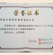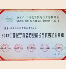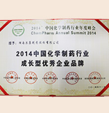 2014中國(guó)化學(xué)制藥行業(yè)成長(zhǎng)型優(yōu)秀企業(yè)品牌
