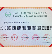 2013年中國(guó)化學(xué)制藥行業(yè)藥用輔料優(yōu)秀企業(yè)品牌