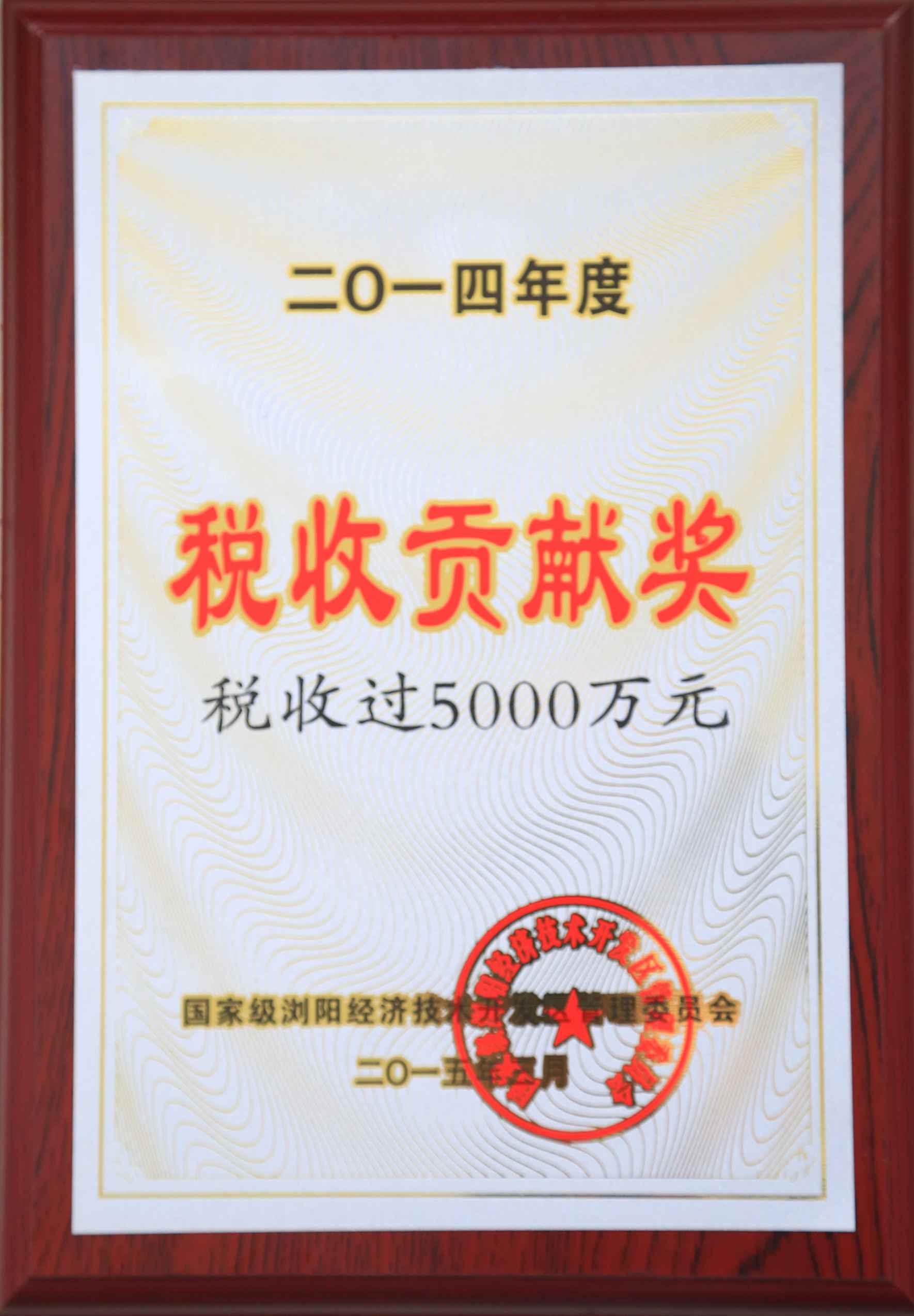 2014年度稅收貢獻(xiàn)獎(jiǎng)(稅收過(guò)5000萬(wàn)元)