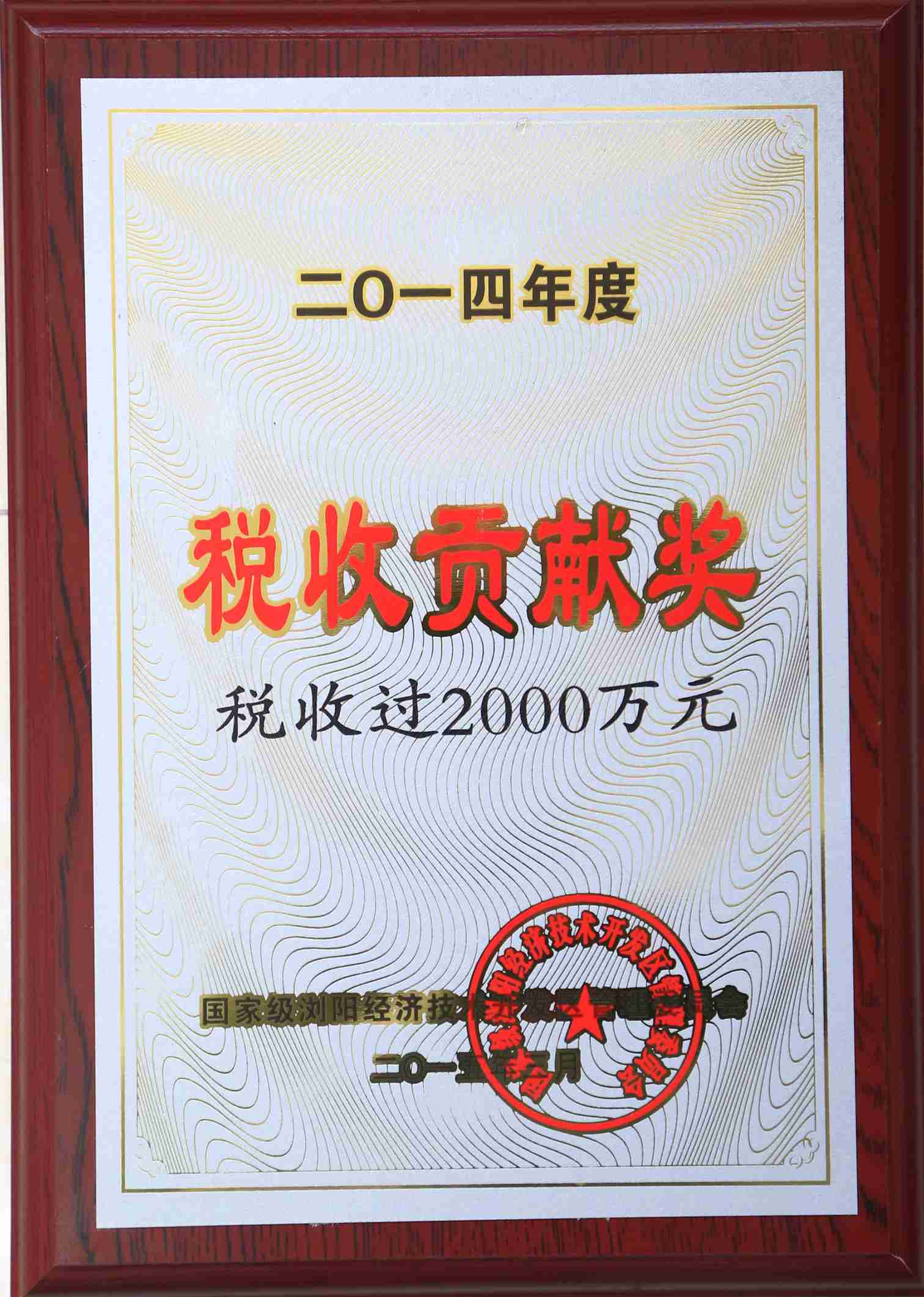 2014年度稅收貢獻(xiàn)獎(jiǎng)(稅收過(guò)2000萬(wàn)元)