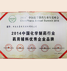 2014中國(guó)化學(xué)制藥行業(yè)藥用輔料優(yōu)秀企業(yè)品牌
